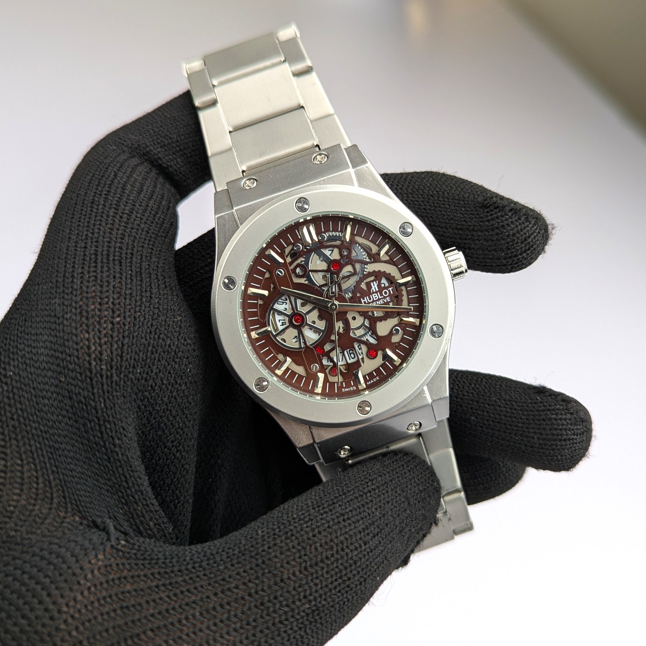 ঘড়ির ভেতরের গিয়ার এবং মেকানিজম বাইরে থেকেই দেখা যায়।