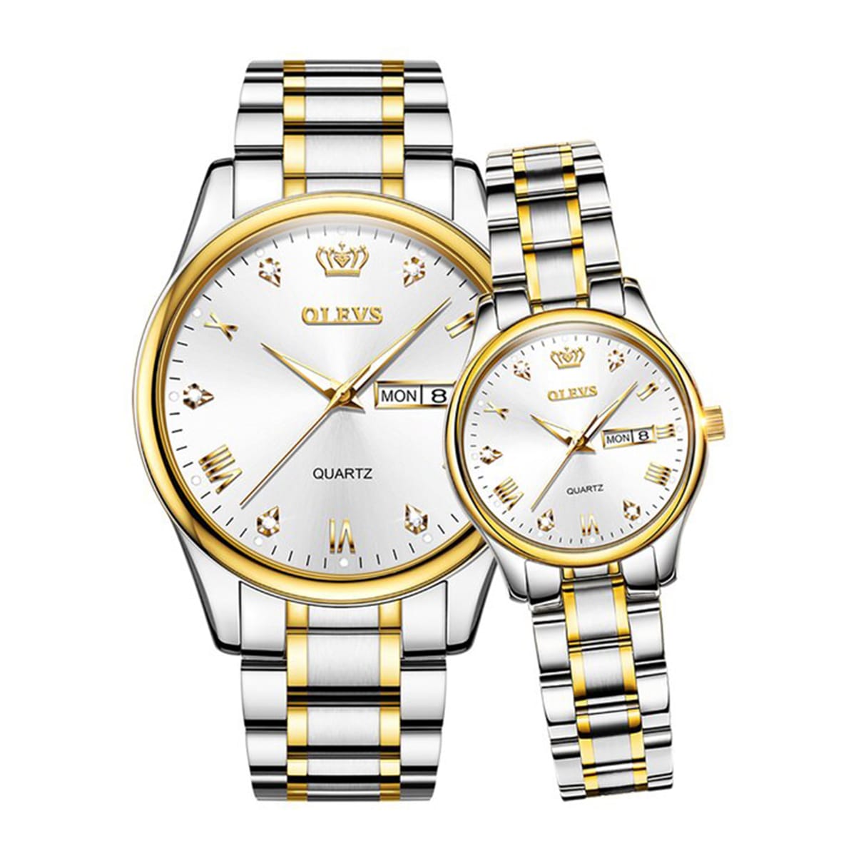 Olevs 5563 Couple Watch tow tone chain (white dial)