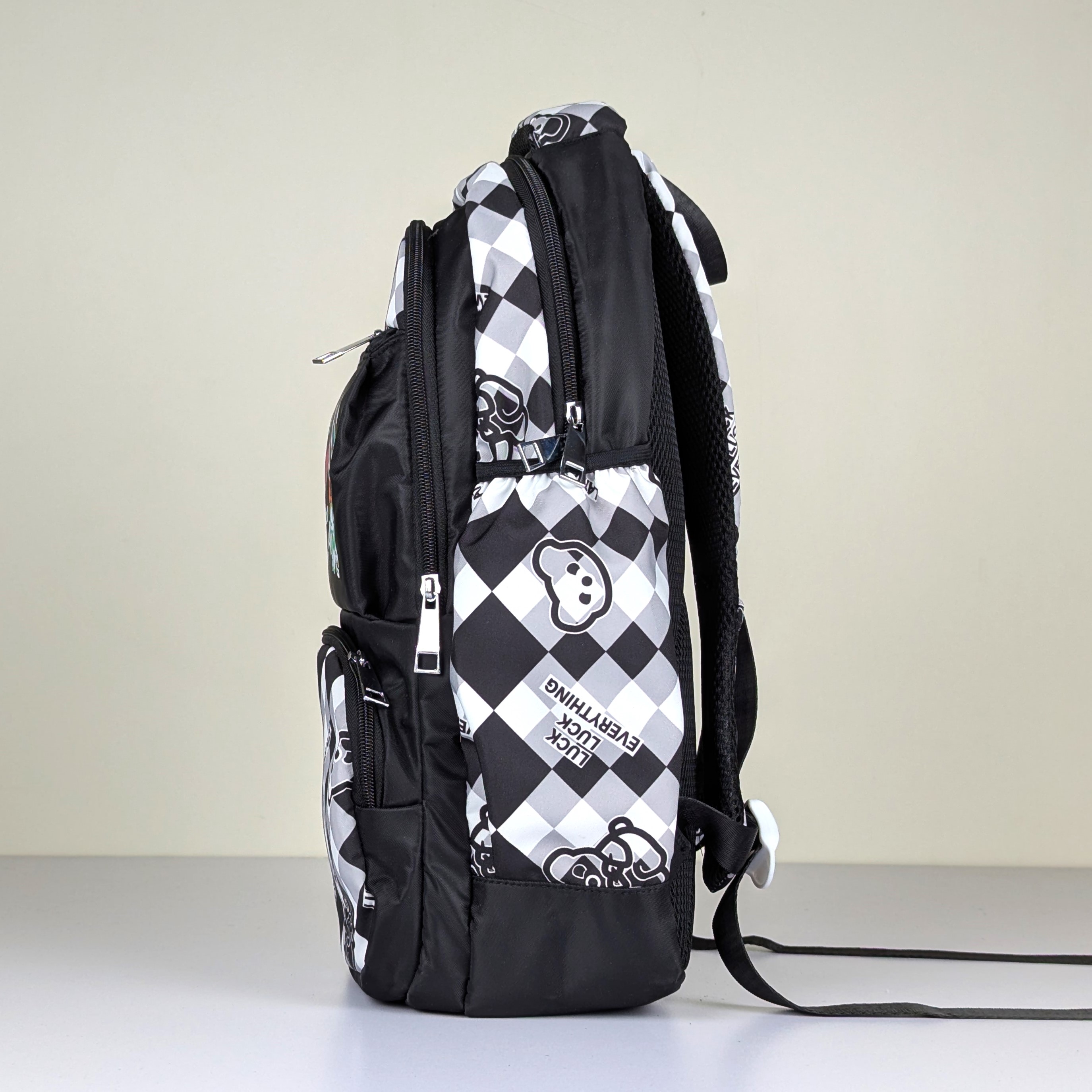 এতে প্রধান একটি বড় কম্পার্টমেন্টের পাশাপাশি সামনে ৩টি ছোট জিপার পকেট আছে, যা পেন্সিল বক্স বা ছোট জিনিস রাখার জন্য সুবিধাজনক।