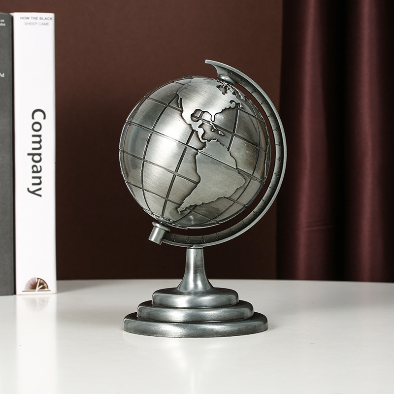 - Product Type: Made of high-quality iron art material, non-slip base, rotatable. Vintage antique bronze color rotating world globe with base.
