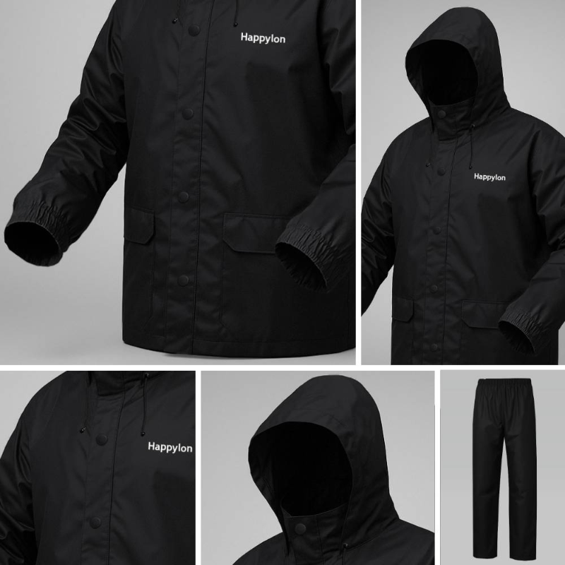 100% Water proof High quality Rain Coat With Pant. (Happylon) Black