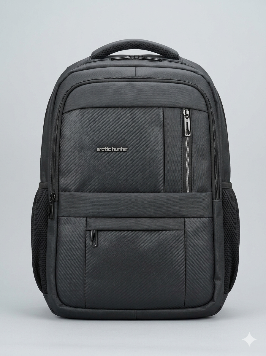 কালো রঙের Arctic Hunter ব্যাকপ্যাকটি আধুনিক ডিজাইন এবং কার্যকারিতার একটি দারুণ সংমিশ্রণ। বিশেষ করে এর সামনের অংশে থাকা কার্বন ফাইবার টেক্সচার ব্যাগটিকে একটি প্রিমিয়াম এবং স্পোর্টি লুক দিয়েছে।